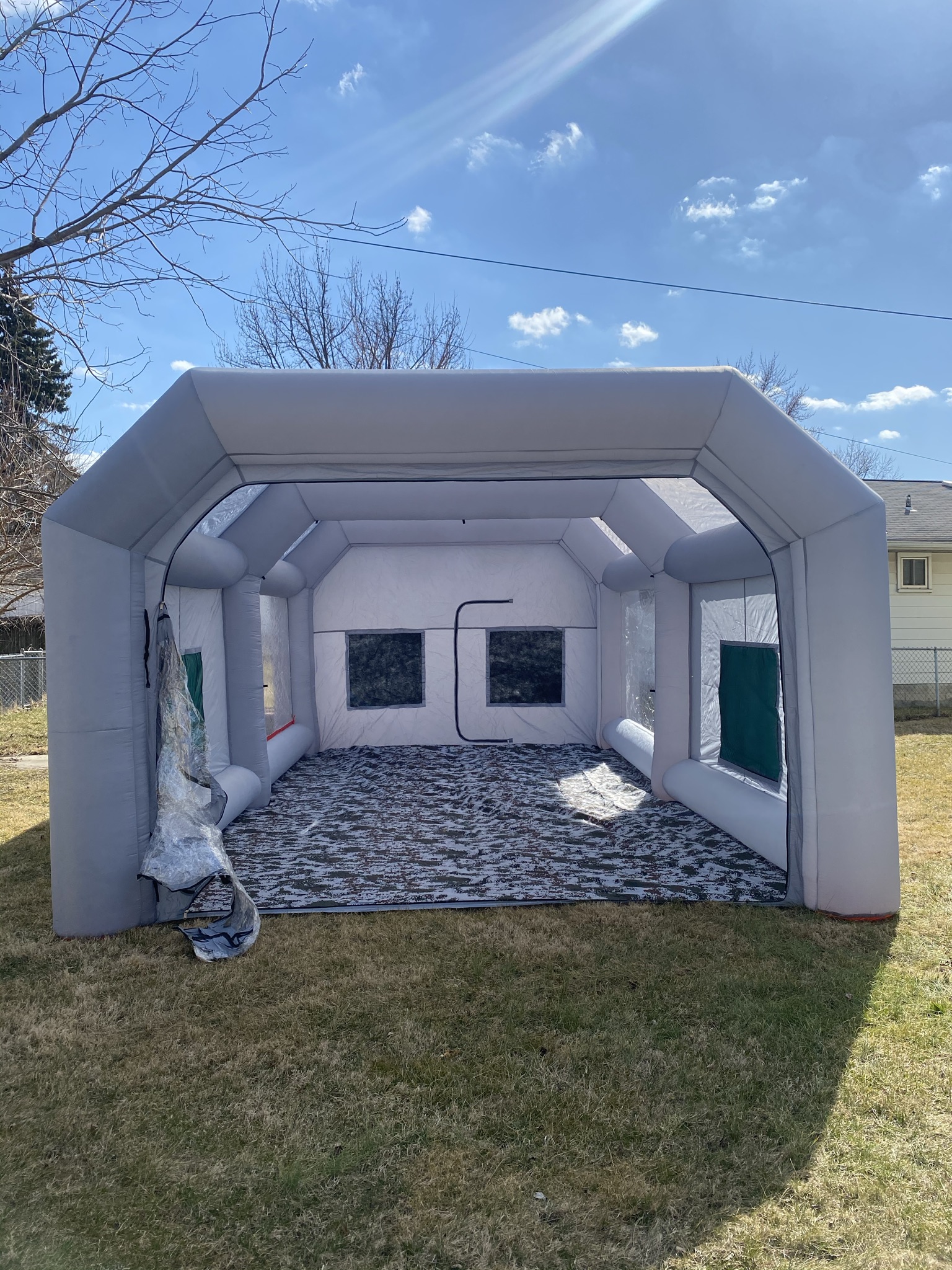 B) If blower motor continues to run; check for blockage of air intake screen on the side of the blower unit. Also check all air tubes on the back of the inflatable for snugness and tighten ties if necessary.